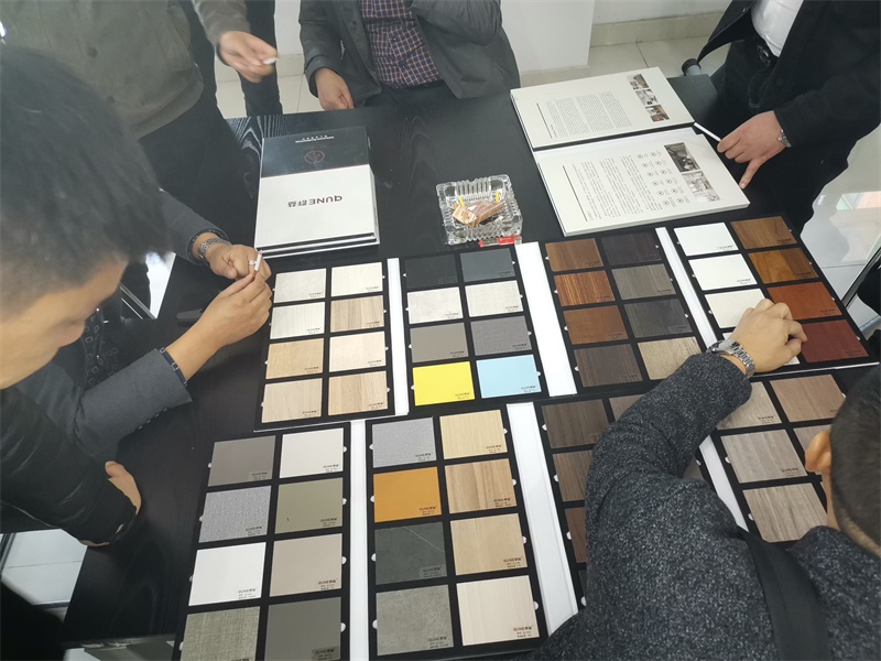 2019年11月19日萊茵加盟商來廠部參觀學習,并參觀了我們的免漆板材料供應商。